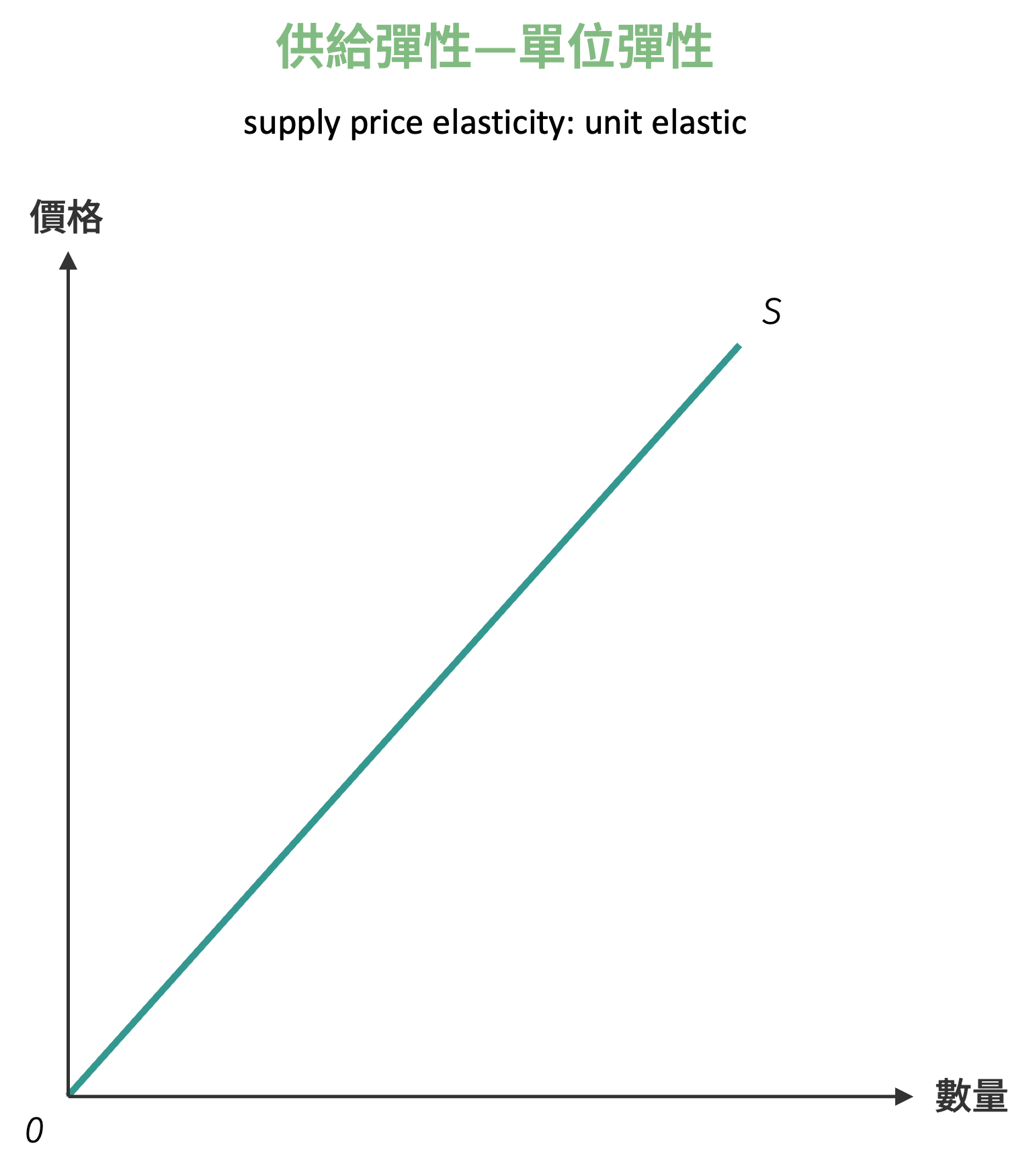 | \(\varepsilon_s = 1\) | 單位彈性 | 45度向上傾斜線 | 理論中的特殊情況 |