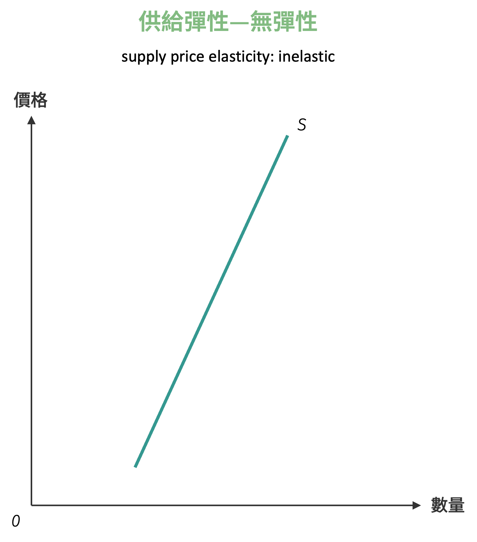 無彈性其供給量變動百分比小於價格變動百分比。供給曲線陡峭向上傾斜,如下圖所示: