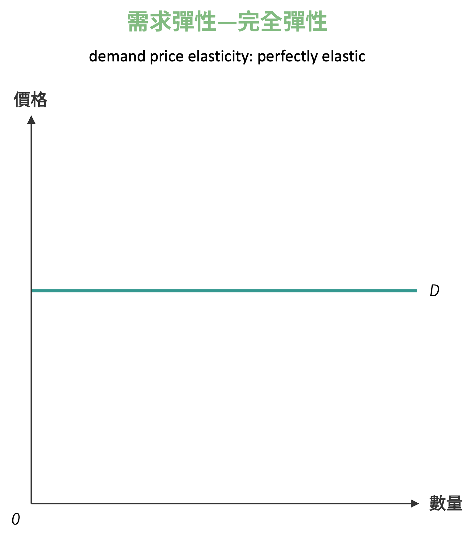 | \(\varepsilon_{p}^{d} = \infty\) | 完全彈性 | 水平線 | 完全競爭市場中的個別廠商需求 |